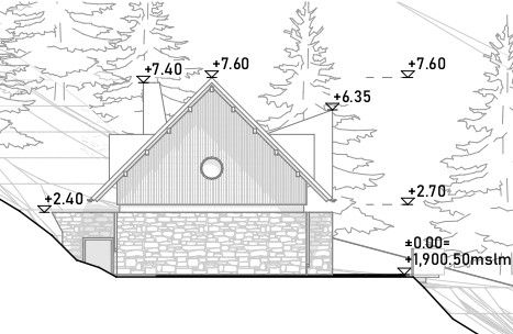 The pre-existing Spruggio “Giovanni Tonini” mountain hut, formerly known as Malga Spruggio Alta, was shaped over time by a succession of interventions that gradually transformed it, until its destruction in the fire of 2016. From its origins, the building displayed features typical of local mountain architecture, such as pitched roofs with generous overhangs and the use of local materials including natural stone and larch wood. The proposed project arises from a reinterpretation of the existing structures, considering their formal, typological, and constructive qualities, as well as their relationship with the surrounding landscape—both natural and built—while deliberately avoiding direct imitation or literal repetition of the former building.